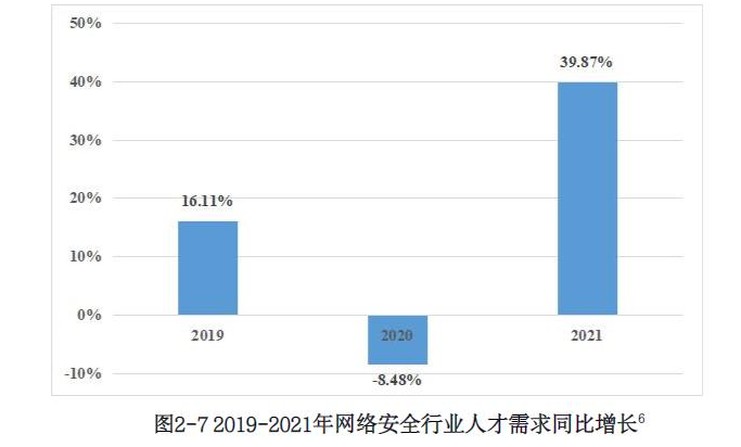 据悉,目前大批企业对网络安全工程师的需求增大,2021年上半年增长了39.87%。从市场规模来看,网络安全工程师需求量最大的是IT信息技术行业,网络安全岗位中,安全研究、审计与评估、应急响应等职位短缺严重。