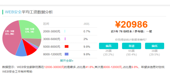 下面我们再看看,web安全岗位的薪资情况: